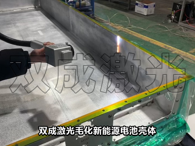 ▪ 某新能源动力电池壳体毛化处理项目:电池壳体在涂胶或贴胶前,需要对表面进行毛化处理以提升粘接力。双成激光为其配备手持式激光清洗机,操作灵活便捷,可精准应对壳体不同部位的毛化需求。通过激光参数精准调控,在无损基材的前提下实现理想的表面粗糙度,取代了传统的人工打磨工艺。该方案实现了零耗材、无接触的绿色处理,表面一致性远超手工操作。